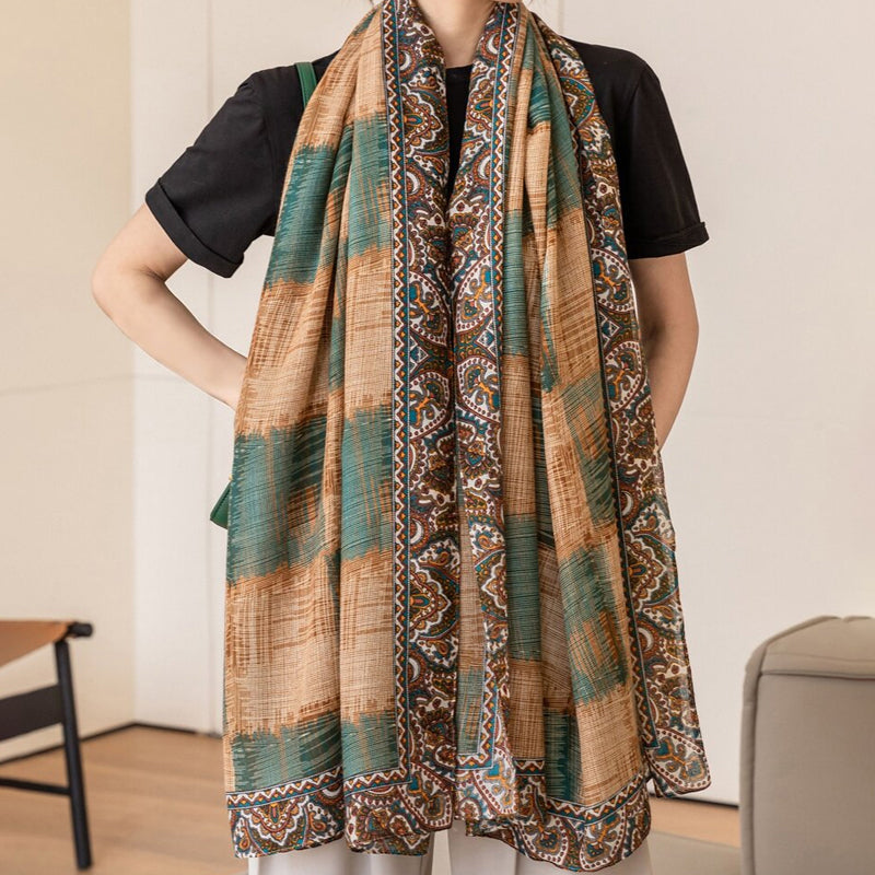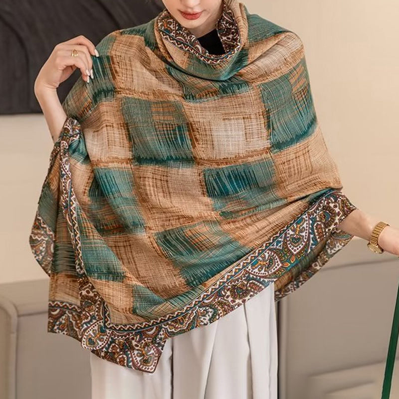 Vintage Etnisk Rutete Skjerf