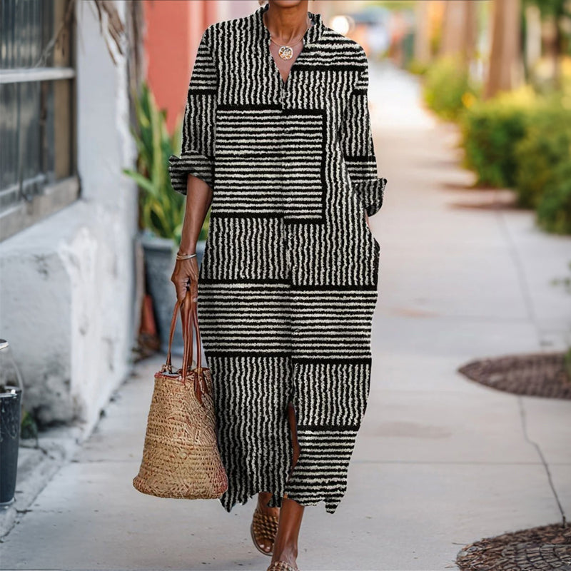 #Cyber Monday# 【Lange Ermer】Uformell Stripete Kjole